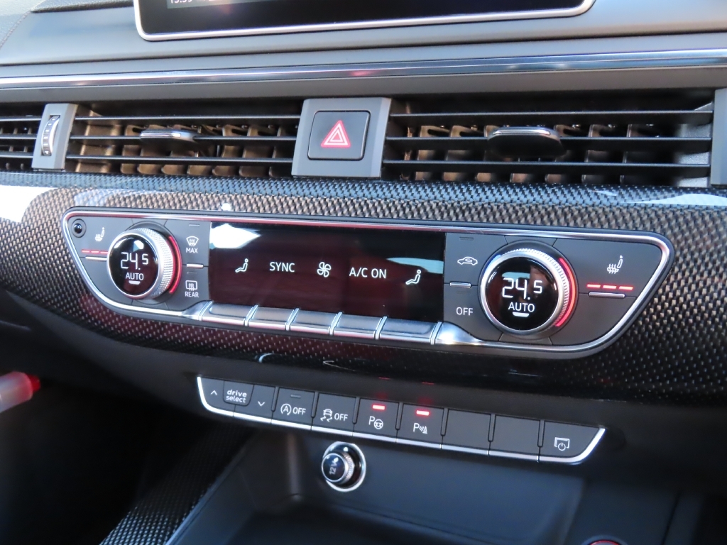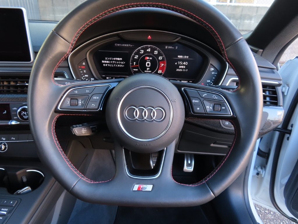 通常のS5はアルカンターラのハーフレザー仕様ですが、本車両はダイヤモンドステッチ入りのフルレザーシートを採用し、高級感ある室内空間を演出。さらに運転席・助手席にはマッサージ機能も備わる特別仕様です。