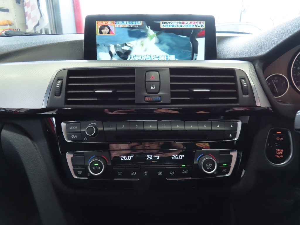 後付けすると高額になりがちなフルセグTVが装着されている点も、実用面で大きなポイントです。 スタイリッシュなフロントスポイラーやブラックグリルも装着され、足回りとのバランスを含め、全体の雰囲気は純正の世界観を崩さず非常に綺麗にまとまっています。